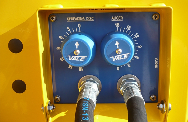 The VALE MS800 gritter is fitted with category 2 three-point linkage points the spreader can be used with suitable 80+ hp tractors. The spreading circuit is powered from the tractor’s auxiliary hydraulic circuit (spool valves).